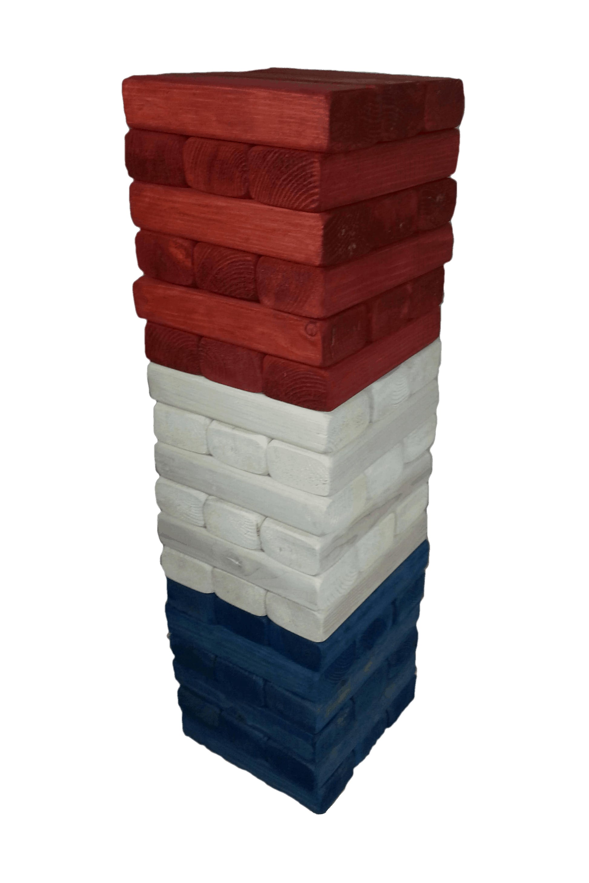 The blocks are stained in Red, White, and Blue. Perfect for National holidays like 4th of July, memorial day, labor day etc. This Big custom set is narrower than our GIANT Custom 2x4 Sets and is more portable. Expedited shipping, orders ship out daily.