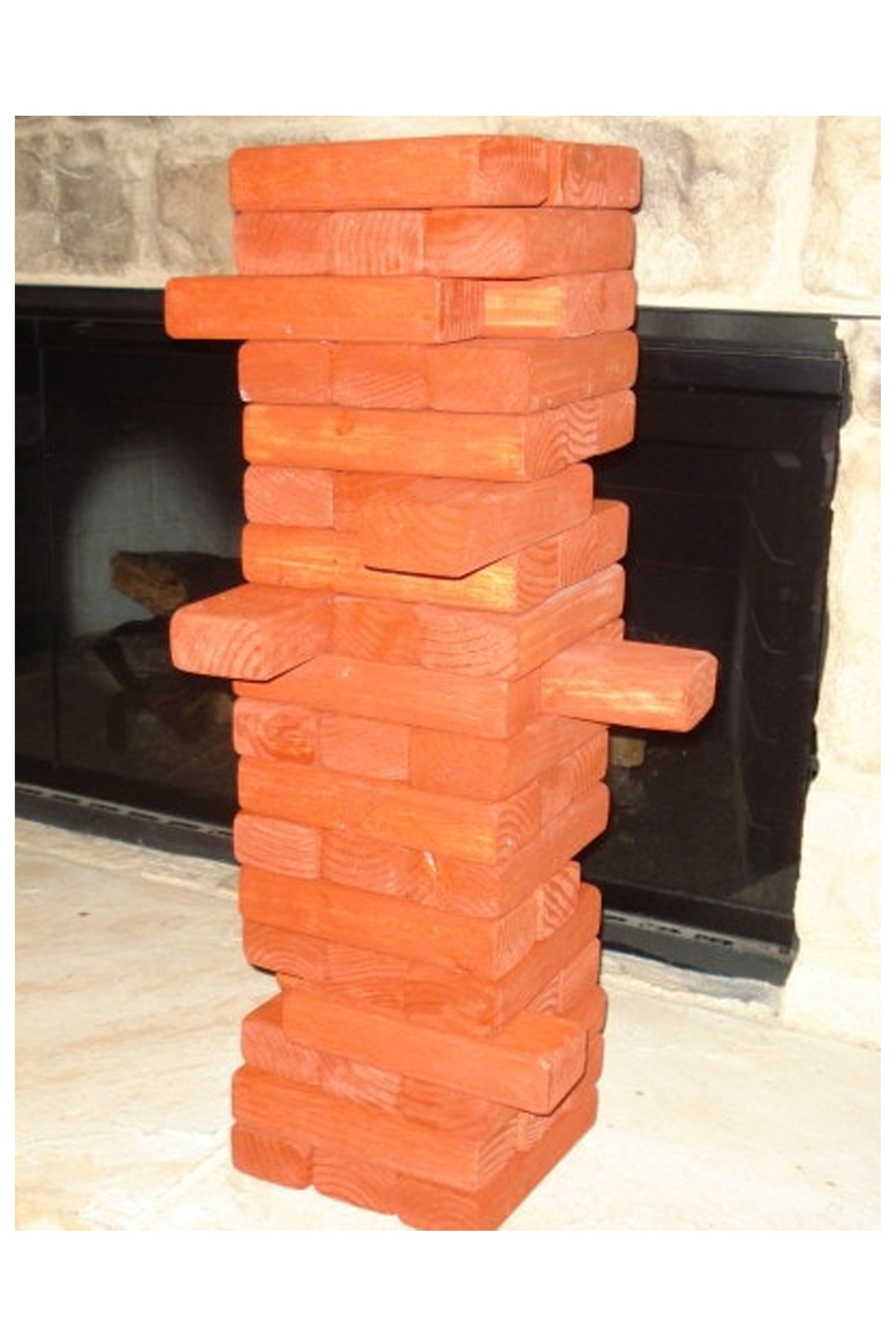 54 pieces in Stained in Rustic RED - Huge-Tumbling Blocks 7.5"x 7.5"x 27" - (18 rows) 2.5ft Tall from 2x3's., the game can stack up to 4+ft during play.